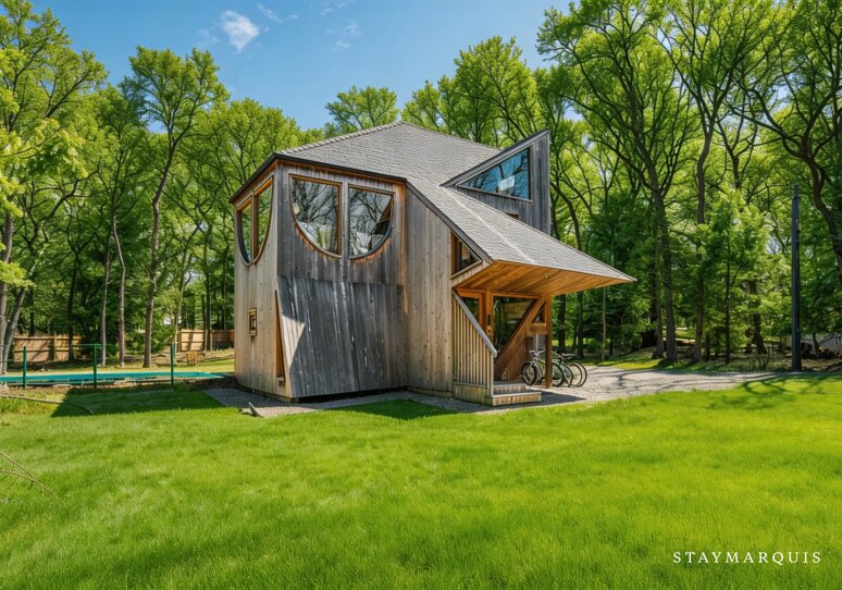 Andrew Geller was one of the premiere midcentury architects remembered most of all for his playful beach houses in the Hamptons. This home, the Antler House, is one of his most published and celebrated homes, including recent articles in Architectural Digest, Dwell, Archinect, etc.. Staying in this home is a once-in-a-lifetime vacation experience. Private and protected by the surrounding oak forest, yet just blocks from Louse Point beach, it is the best of both worlds - a woodsy cabin and a stylish beach house. During summer, the giant oaks create a cocoon for the property, hiding it away from the rest of the world. Set equidistant between Amagansett and East Hampton, the private yet close to town(s) location gives you all the best summer options without having to deal with traffic on Montauk Highway. Even during the peak of summer, Montauk is just a short 15 minute drive through backroads. It's a perfect getaway for couples or families who value midcentury architecture and decor, as well as those who like to entertain on the large outdoor deck with dining, bbq, and stunning treetop views. The property has two bedrooms on the ground floor and a brand new pool. A full ground up restoration was completed in 2019 including adding all modern conveniences including HVAC, heated bathroom floors, and a full cinematic experience with a 120" movie screen and 4k laser projector.