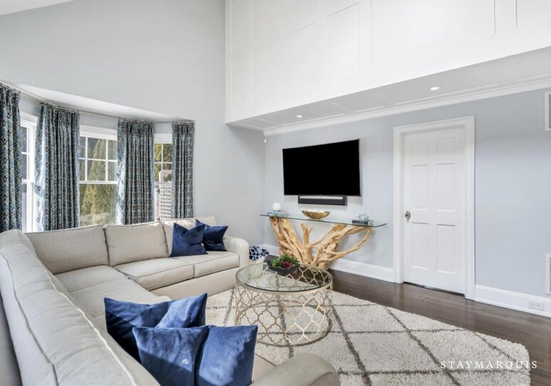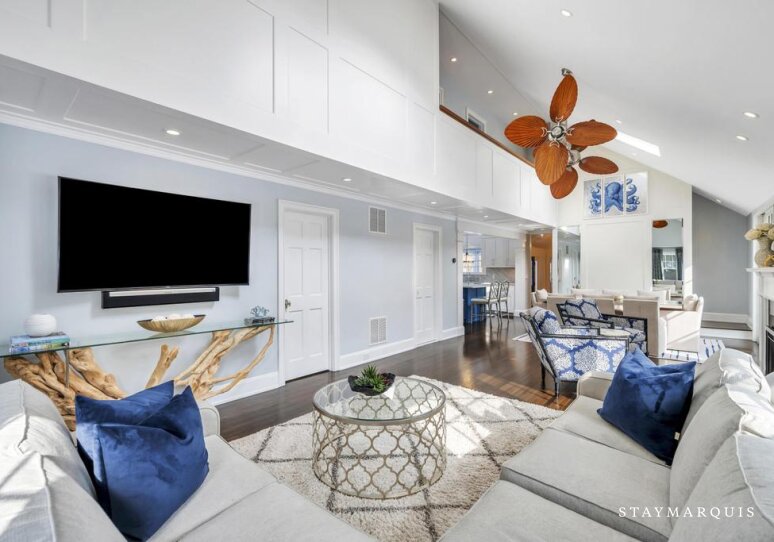 Each of the three bedrooms is designed as a comfortable retreat, offering calm décor, plush bedding, and ample storage. With four full bathrooms, the home easily accommodates families and groups, ensuring privacy and ease even during busy mornings. Guests will find fresh, hotel-quality linens, soft towels, and all the essentials thoughtfully provided, allowing everyone to settle in effortlessly from the moment they arrive. Every detail has been considered to create a space that feels both elevated and welcoming.