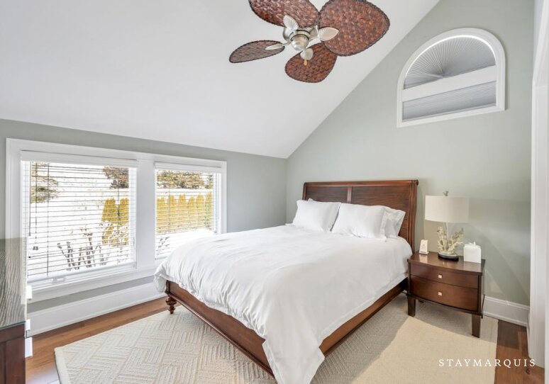 - Bedroom 1 - Primary: One King Bed, 2nd Floor, Air Conditioning, Full Ensuite Bathroom, Streaming TV, Walk-in Closet