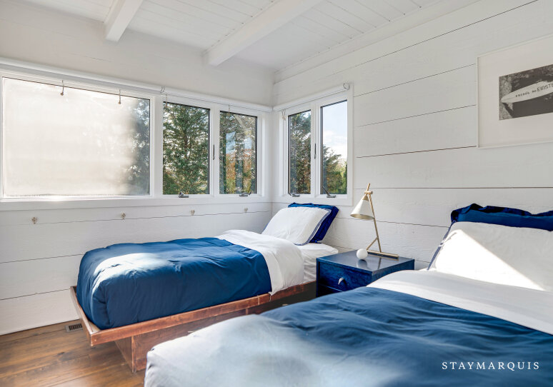 Inside, the home flows with comfort and ease. The open layout allows guests to drift naturally from the sun-drenched living room to the dining room and onward to the gourmet kitchen. With a blend of modern design and warm textures, the space exudes understated luxury. Culinary enthusiasts will appreciate the well-stocked kitchen, high-quality appliances, ample prep space, and coffee maker that makes mornings effortless. High-speed WiFi, central air conditioning, a washer and dryer, and thoughtfully appointed furnishings ensure the home offers both convenience and comfort. Whether preparing dinner together, lounging with a glass of wine, or enjoying a family game night, the communal spaces provide a harmonious backdrop for connection.