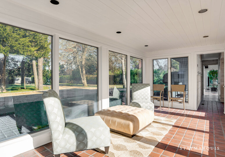 Outdoors, the amenities create a true East Hampton retreat. A partially covered back deck sets the tone for slow mornings, al fresco lunches, and easy evenings under the stars. The private heated pool is surrounded by ample seating for lounging in the sun or savoring an afternoon swim while the gas grill invites memorable summer dinners shared with friends and family. Whether relaxing quietly or entertaining effortlessly, the outdoor spaces are designed to elevate every moment of a guest’s stay.