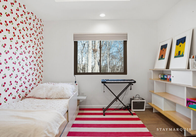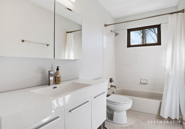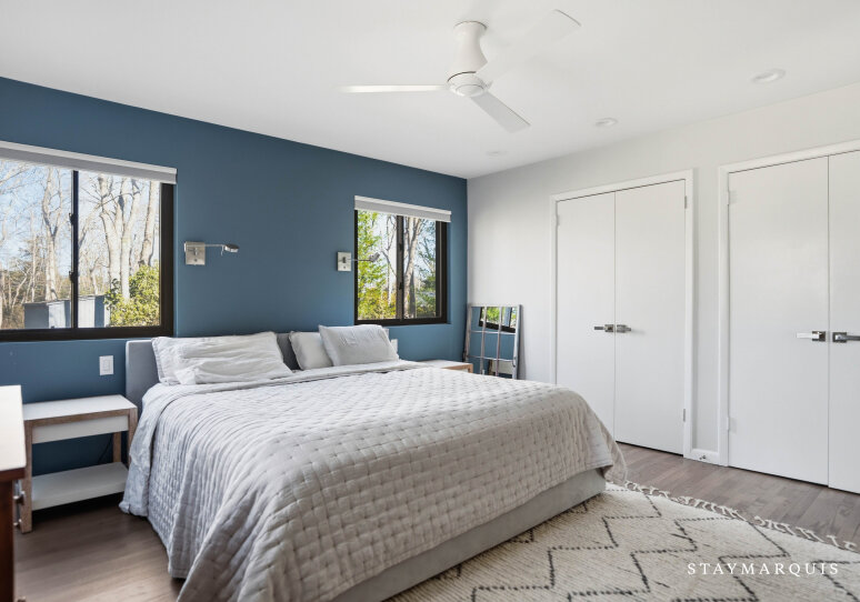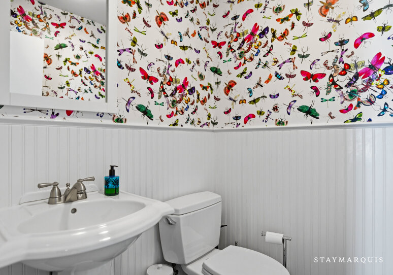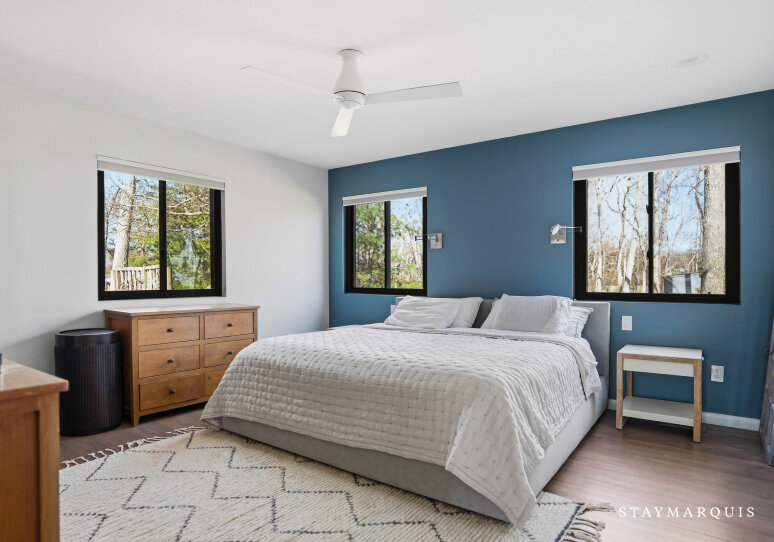 Each of the four bedrooms is designed as a peaceful retreat, featuring plush bedding, fresh linens, and calming décor. The primary suite offers added privacy, while the additional bedrooms comfortably accommodate family and guests. Two and a half bathrooms are finished with modern fixtures and all essential amenities.