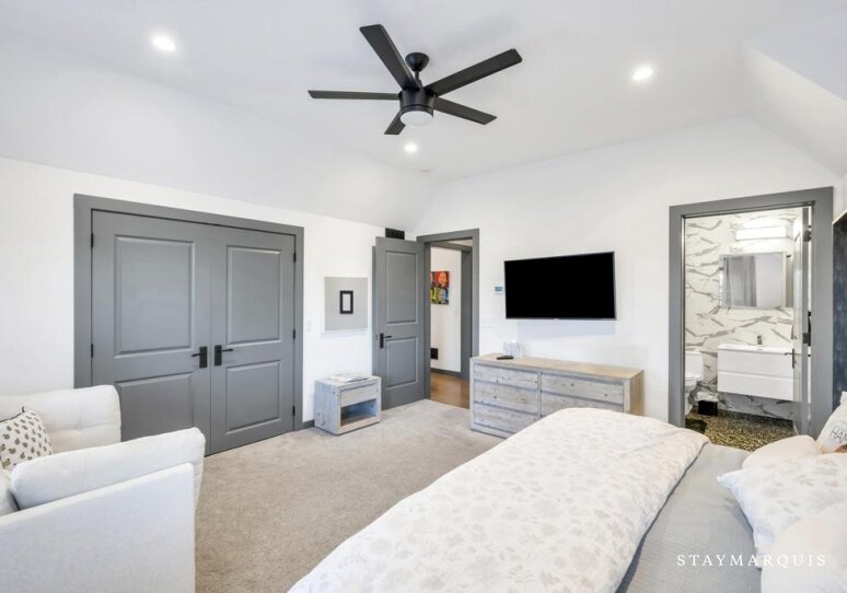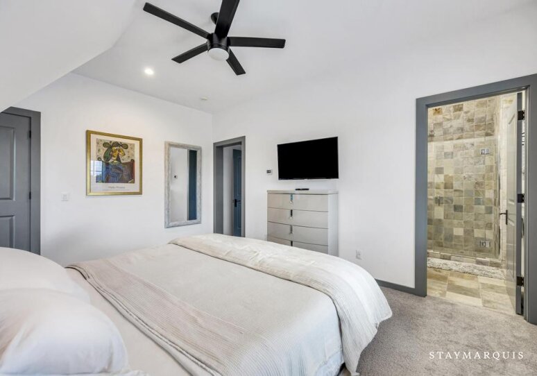 - Bedroom 3: One Queen Bed, 2nd Floor, Air Conditioning, Full Ensuite Bathroom, Streaming TV, Standard Closet