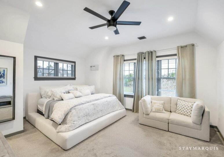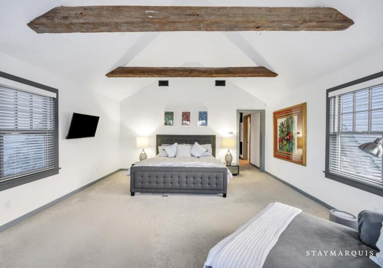 - Primary: One King Bed, 2nd Floor, Air Conditioning, Full Ensuite Bathroom, Streaming TV, Walk-in Closet