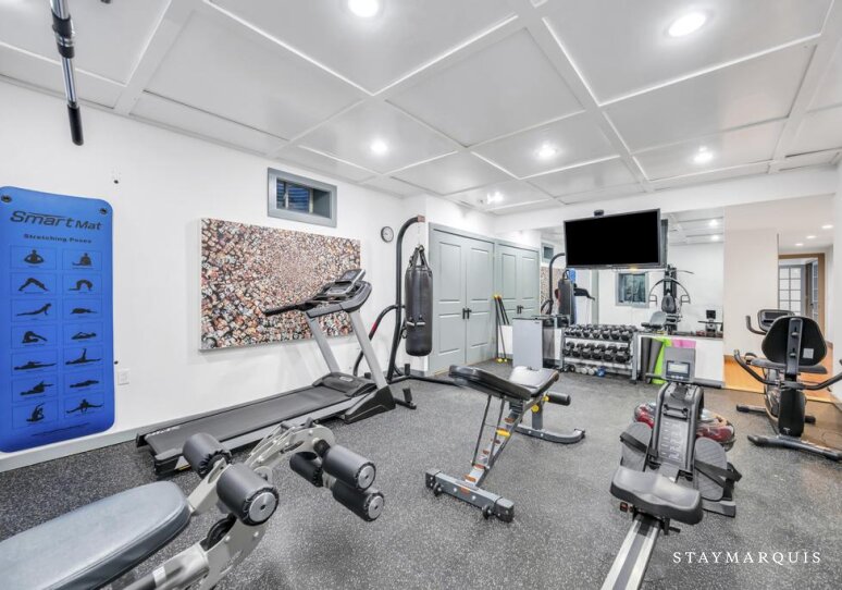 Bed Linens, Usable Fireplace (Gas), Air Conditioning (Central Air), Dryer, Heating, Internet (Wifi), Washer, Gym/Fitness Room (Elliptical, Treadmill, Stationary Bike, Weight Training Equipment, Stretching / Yoga Mat), Garage (Detached), Hair Dryer, Iron/Ironing Board, Living Room, Parking, Bath Towels, Pool/Beach Towels, Microwave, Coffee (Nespresso, Keurig), Dishes and Silverware, Pots and Pans, Toaster, Blender, Pool Table, Speaker System (Sonos), Television (Main Living Room), Private Entrance, Steam Room, Kitchen, Carbon Monoxide Detector, Smoke Detector, Hot Water, Refrigerator, Oven, Stove, Dishwasher, Fire Extinguisher, Smart TV, Wine Fridge, Ice Maker, Laptop-Friendly Workspace, Privacy (Completely Private), Essentials