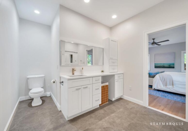 - Bedroom 5 - Ensuite: One King Bed, Lower Level, Air Conditioning, Full Jack & Jill Ensuite Bathroom, Standard Closet