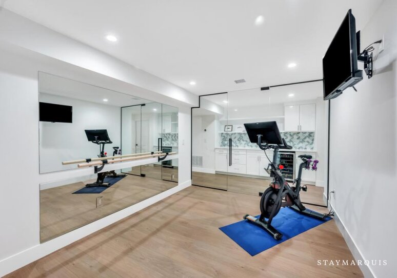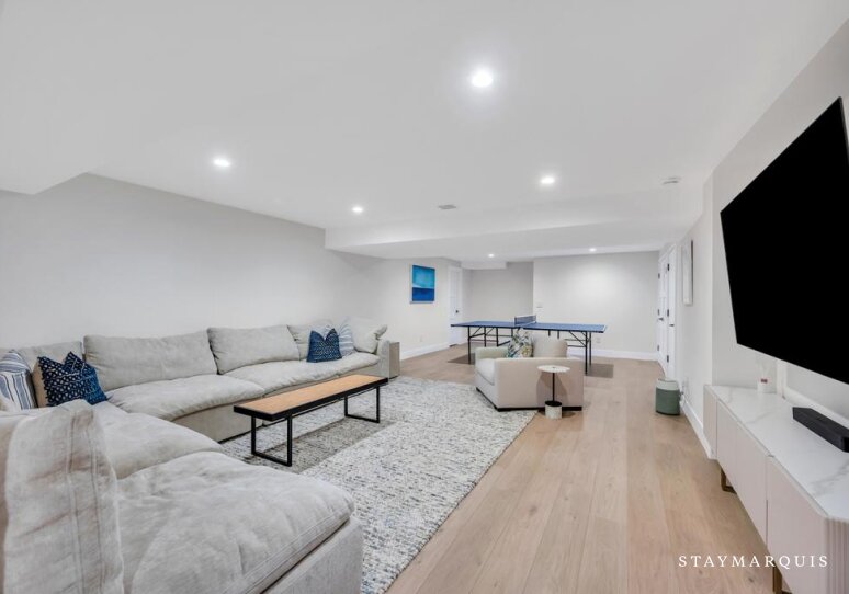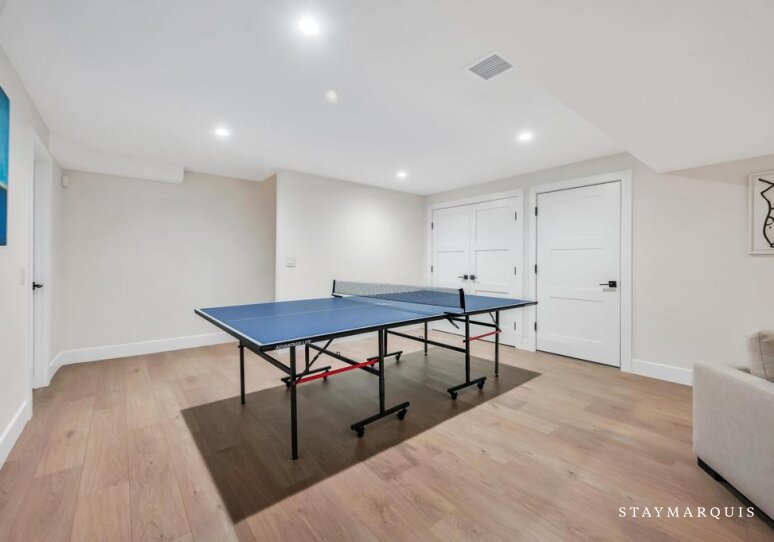 Bed Linens, Air Conditioning (Central Air), Dryer, Heating, Internet (Wifi), Washer, Gym/Fitness Room (Stationary Bike, Stretching / Yoga Mat), Hair Dryer, Living Room, Parking, Bath Towels, Pool/Beach Towels, Microwave, Coffee (Pot), Dishes and Silverware, Pots and Pans, Toaster, Blender, Ping Pong Table, Television (Main Living Room, Den, Media Room, Gym), Private Entrance, Kitchen, Carbon Monoxide Detector, Smoke Detector, Hot Water, Refrigerator, Oven, Stove, Dishwasher, Fire Extinguisher, Smart TV, Ice Maker, Laptop-Friendly Workspace, Privacy (Completely Private), Essentials, Wine Fridge