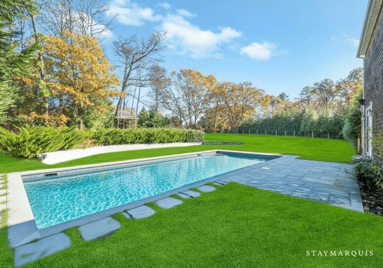 Southampton sanctuary with resort-style pool, lush grounds, and spacious modern living