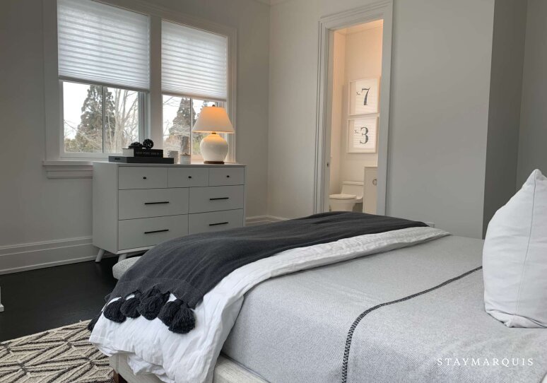 - Bedroom 2: One Queen Bed, 2nd Floor, Air Conditioning, Full Ensuite Bathroom, Walk-in Closet