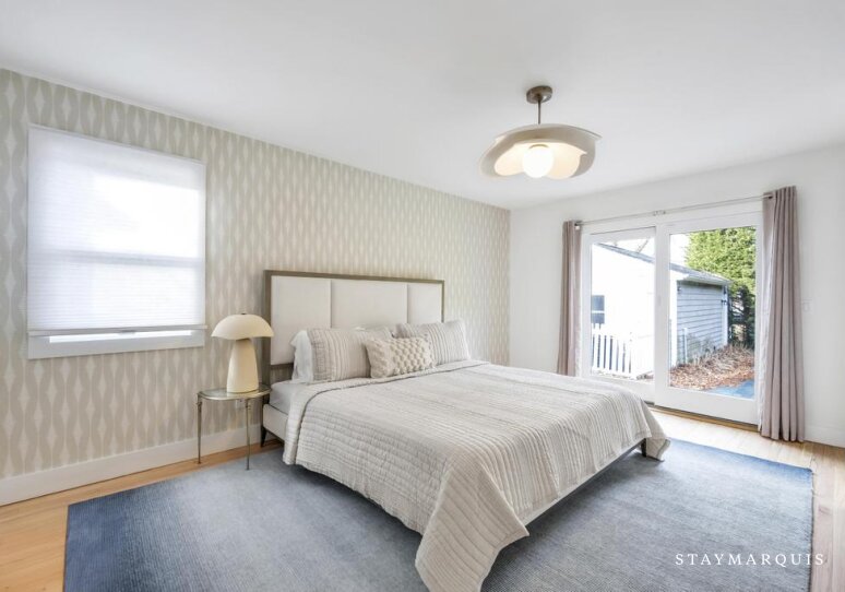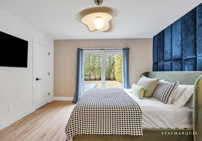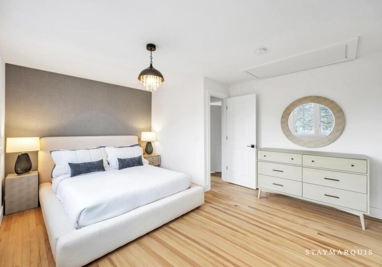 The home’s four bedrooms are designed as calm, private retreats, each offering a comfortable place to recharge after a full day exploring Southampton. A thoughtful mix of king and queen beds allows the home to comfortably sleep up to eight guests. Fresh linens, plush bedding, and all the essentials are provided, ensuring a hotel-quality experience in a private home setting. The bathrooms are clean, spacious, and well-appointed, making daily routines feel relaxed and unhurried.