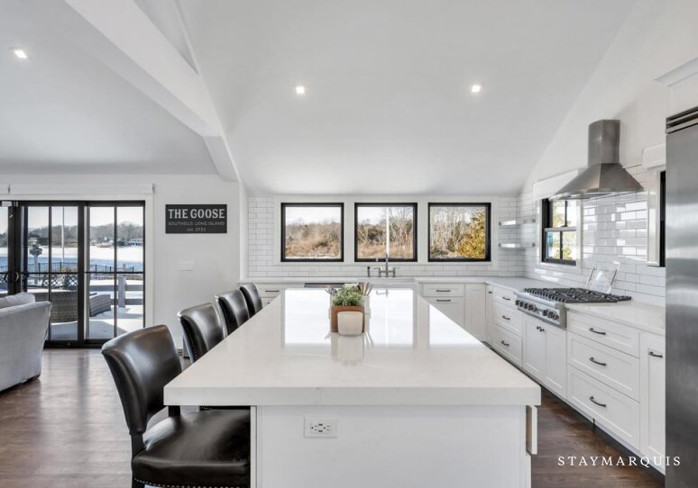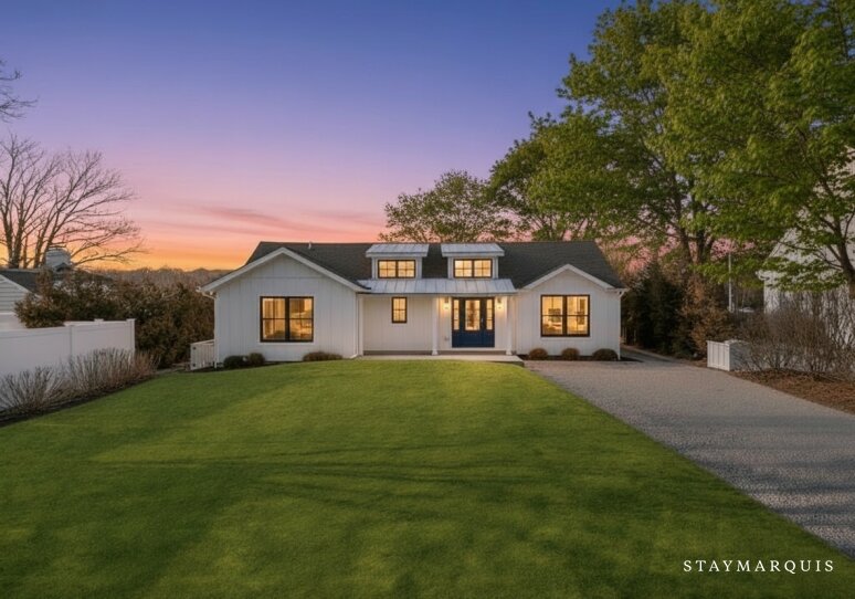 Nestled along the serene waterfront of Southold, this modern retreat offers a perfect blend of relaxation, luxury, and coastal charm. Designed with an open floorplan, this home provides an ideal setting for families, friends, or small groups seeking a memorable getaway. From the moment you arrive, you’ll feel the stress of daily life melt away as you step into a space that balances comfort and elegance, complete with seamless indoor-outdoor living. Light-filled rooms, tasteful décor, and thoughtful design details create an inviting atmosphere where guests can unwind, gather, and reconnect.