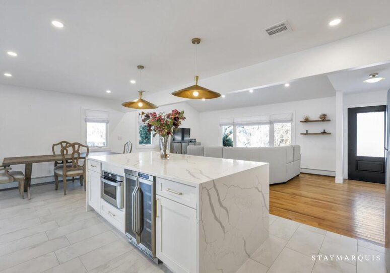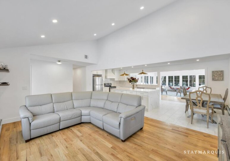 Set on a beautiful private block just moments from the water and Shinnecock Hills Golf Club, this newly renovated Hamptons retreat offers an effortless escape designed for families and sophisticated travelers seeking tranquility near Southampton’s most coveted destinations. From the moment guests arrive, they are welcomed by manicured landscaping and a sense of quiet calm that feels worlds away from daily life. Inside, the open floorplan creates an inviting flow between living spaces, making it easy for families and friends to gather while still enjoying personal comfort. Thoughtfully designed bedrooms and well-appointed bathrooms provide a refined yet relaxed atmosphere, allowing guests to settle in and immediately feel at home.
