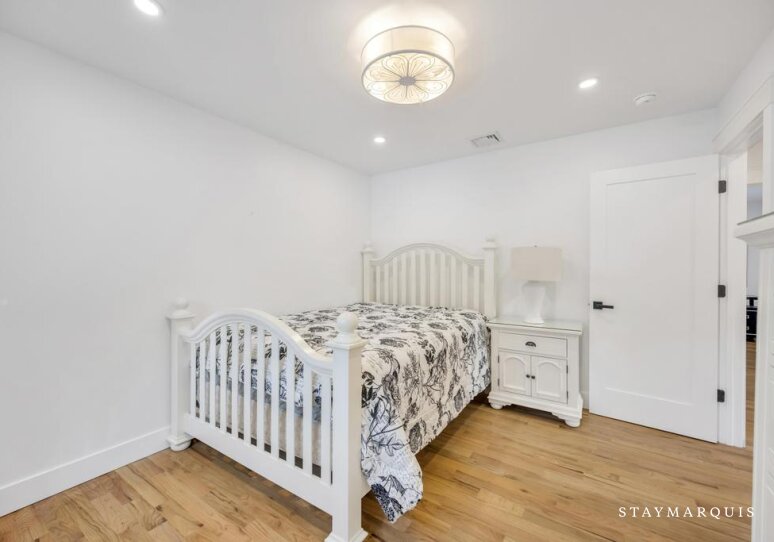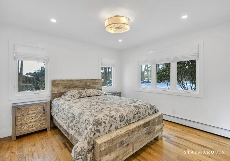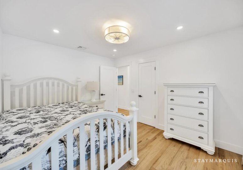 The three bedrooms serve as tranquil sanctuaries designed for restful nights and slow mornings. Each room is tastefully appointed with plush bedding, fresh linens, and calming décor that reflects the understated elegance of the Hamptons. The primary suite offers added privacy and comfort, while additional bedrooms are ideal for family members or visiting friends. The two and a half bathrooms are beautifully updated, featuring modern fixtures and stocked with the essentials guests need throughout their stay. From fluffy towels to carefully curated amenities, every element contributes to a refined yet welcoming experience.