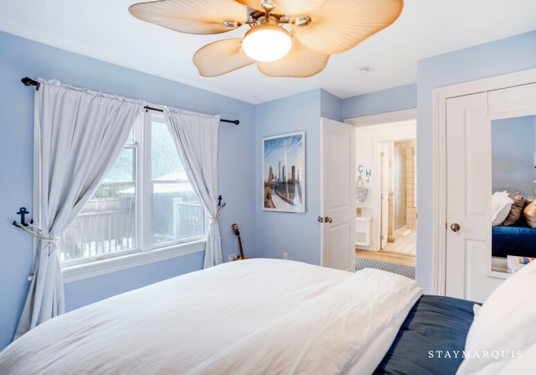 - Primary Bedroom 1: One King Bed, 2nd Floor, Air Conditioning, TV, Closet