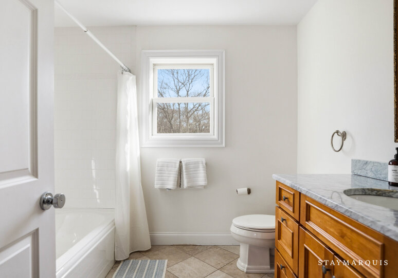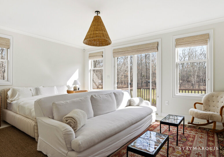 The massive backyard is ideal for unwinding with and entertaining friends and family. Fire up burgers, brats, and veggies on the gas grill to enjoy al fresco at the eight-person table on the beautiful mahogany deck. Take a dip in the 20 x 40 heated, sparkling saltwater gunite pool. Soak up the sun with a book and a cold beverage on the eight poolside lounge chairs. Run around and partake in fun family activities like a game of softball or horseshoes on the lush lawn. When you’re ready to explore, take the two supplied adult bikes for a scenic ride. Three Mile Harbor, where you can launch kayaks and paddle boards, is only minutes away. Enjoy a day of fun in the sun at Maidstone Park Beach, a short drive and bike ride away. When you return, wash off the sand in the outdoor shower with hot and cold water. Get a good night’s sleep in the spacious five bedrooms, including a primary suite on the second floor with an ensuite bathroom and a balcony. There is an additional sleeping space, if needed, with a sleep sofa on the first floor. Wonderful in Springs is sure to be an unforgettable Hamptons getaway.